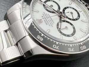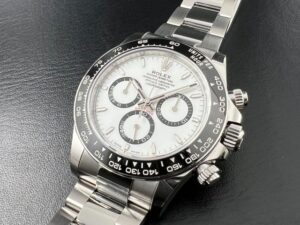 本日は2023年に登場した現行デイトナのステンレスモデル Ref.126500LNの白文字盤を紹介させて頂きます。 2000年から20数年という長きに渡ってデイトナの ムーブメントとして採用されていたcal.4130がついに 新型ムーブメントcal.4131へと変更! デザイン面も旧型モデルよりさらにシャープに 生まれ変わりました。バランスの取れたヴィジュアルに 白文字盤の上品さが相まって今作も高い評価を 受ける人気モデルとなっています!! まずはご試着からお気軽にどうぞ。 皆様のご来店を心よりお待ちしております。 |