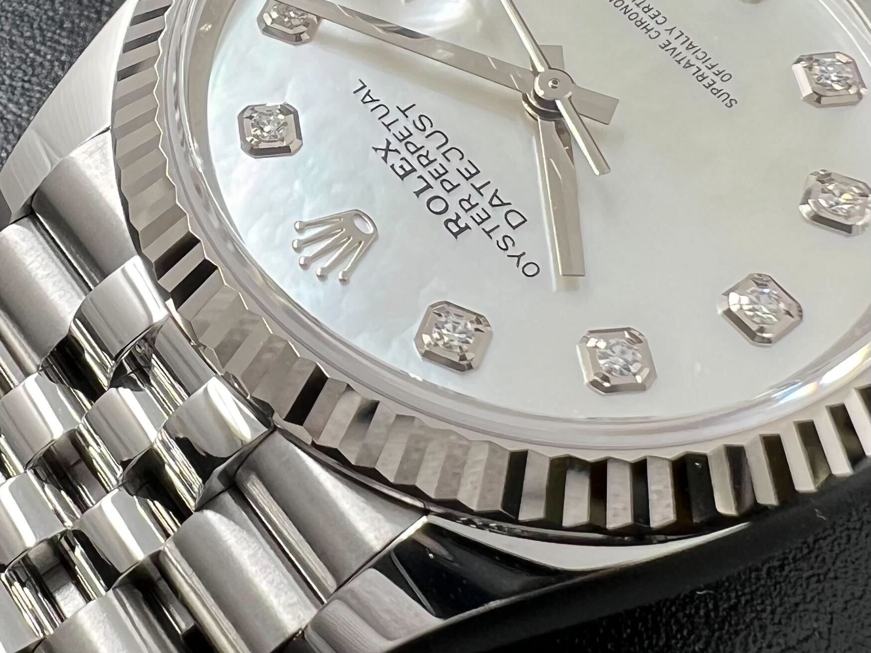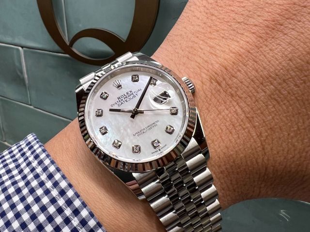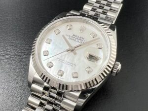 本日は現行デイトジャスト、Ref.126234NGを紹介させて頂きます。 『NG』とはシェル&ダイヤモンドのこと。 こちらは文字盤にホワイトシェルを使用した希少なモデルとなります。 メンズサイズのシェル文字盤は流通量が少なく、 なかなか入荷しないためお探しの方はこの機会に 是非チェックして頂きたい1本となります。 天然の素材ということで1本1本異なる輝きを 見せてくれる自分だけのロレックス! まずはご試着からお気軽にどうぞ。 皆様のご来店を心よりお待ちしております。 |