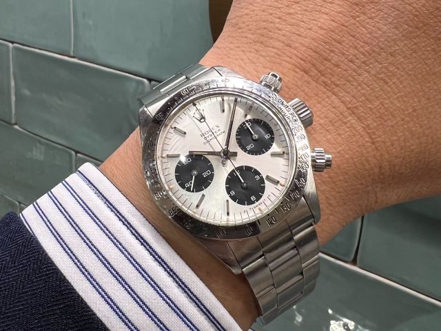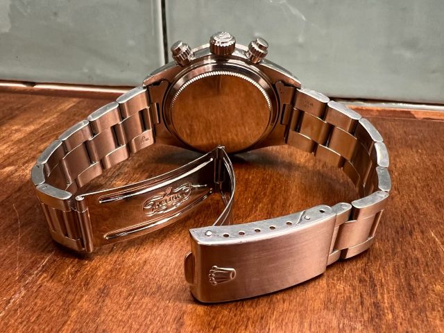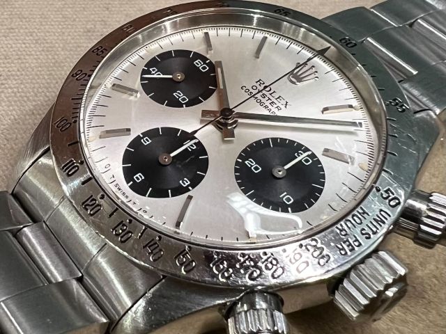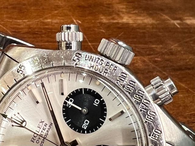 手巻きデイトナ最終型となる第三世代デイトナ。 多くのロレックスファンがいつかは手にしてみたいと言う 憧れのモデルでもあります。 こちらの商品はステンベゼルのRef.6265、シルバーとなります。 「DAYTONA」表記の入らない初期モデルで文字盤の 6時位置には「σ」マークがプリントされています。 ベゼルはMK1、プッシャーはMK2を装備。 ケース径は37ミリで現行スポーツモデルと比較すると 小さくなりますが、それを感じさせない存在感! デザイン性・資産性ともに非常に高い手巻きデイトナ。 近年はコンディションの良い個体の数も減少傾向にあります。 ご興味ある方はお気軽にクォーク梅田店までご相談下さい。 皆様からのお問い合わせ、ご来店を心よりお待ちしております。 |