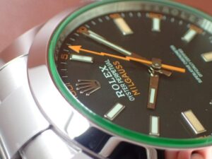 個性的でお洒落な廃盤モデル!! 本日は2007年から2023年まで製造されていた ミルガウス”Ref.116400GV″を、ご紹介致します。 最大1000ガウスの耐磁性能を持つミルガウスの名前の由来は、 フランス語で1000を意味する「ミル」と磁束密度の単位「ガウス」に由来しています。 モデル特有のデザインである、鮮やかなオレンジ色のイナズマ針と 唯一このモデルにのみ採用されているグリーンサファイアクリスタルが 非常に個性的で、派手過ぎないお洒落な1本です! 皆様からのお問い合わせ、ご来店を心よりお待ちしております。 |