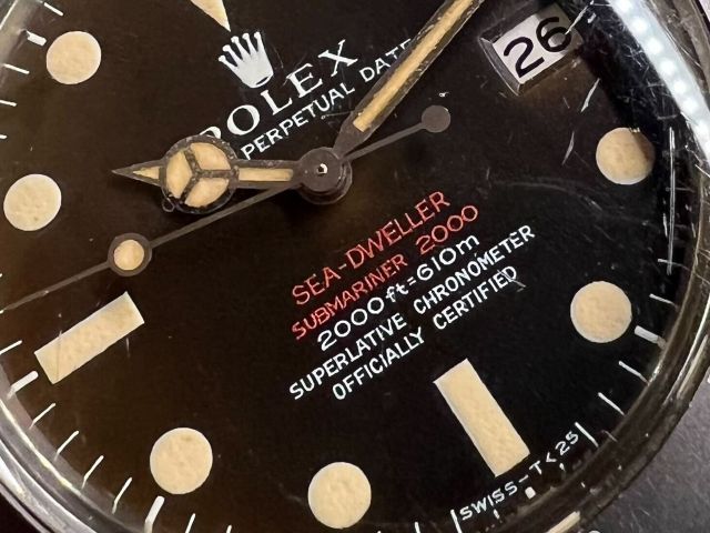 非常に希少な赤シード入荷! 本日は初代シードゥエラー、Ref.1665を紹介させて頂きます。 市場に流通している個体数が少ないことで知られる Ref.1665ですが、その中でも特に希少で人気となっているのが モデル表記が赤字になっている初期モデルの『赤シード』! こちらの個体はMK2ダイヤルでブラウンカラーに エイジングされた『トロピカル』と呼ばれる1本! ベゼルも退色しておりヴィンテージの雰囲気満点です。 なかなか現物を見る機会のない「赤シード」ですので 気になる方はお気軽に梅田店までご相談下さい。 皆様からのお問い合わせご来店を心よりお待ちしております。 |