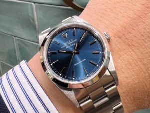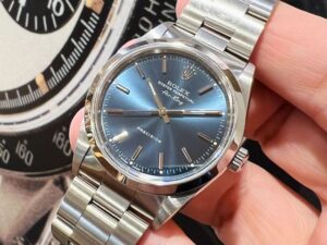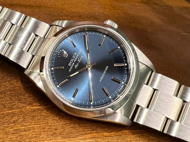深いブルーが美しい1本! 久々に入荷となったエアキング、Ref.14000! 少し小ぶりな34ミリ径で老若男女問わず 着けていただける1本となります。 シャープなフォルムのケースに深いブルーの 文字盤が美しいプレミアムモダンなエアキング。 90年代のモデルながらバックケースのシールも 残っているコンディション良好なオススメ品です。 まずはご試着からお気軽にご相談下さいませ。 皆様からのお問い合わせご来店を心よりお待ちしております。 |